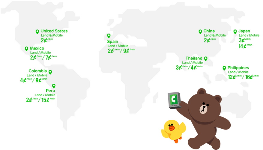 LINE Premium Call offers the same rates no matter where you are calling from. For example, calls to Japan from the US, Thailand, and Spain are at the same rate of JPY 3 per minute for landlines and JPY 14 for mobile phones.